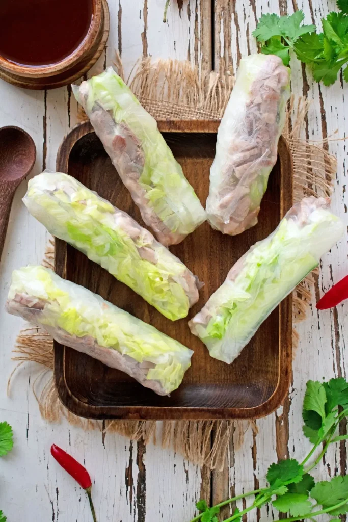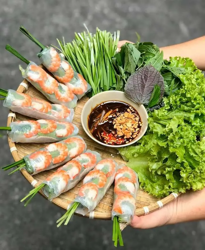 “Rice paper wrapped in mix salad & herbs with vermicelli noodle and served with homemade peanut hoisin sauce or gluten free fish sauce.”